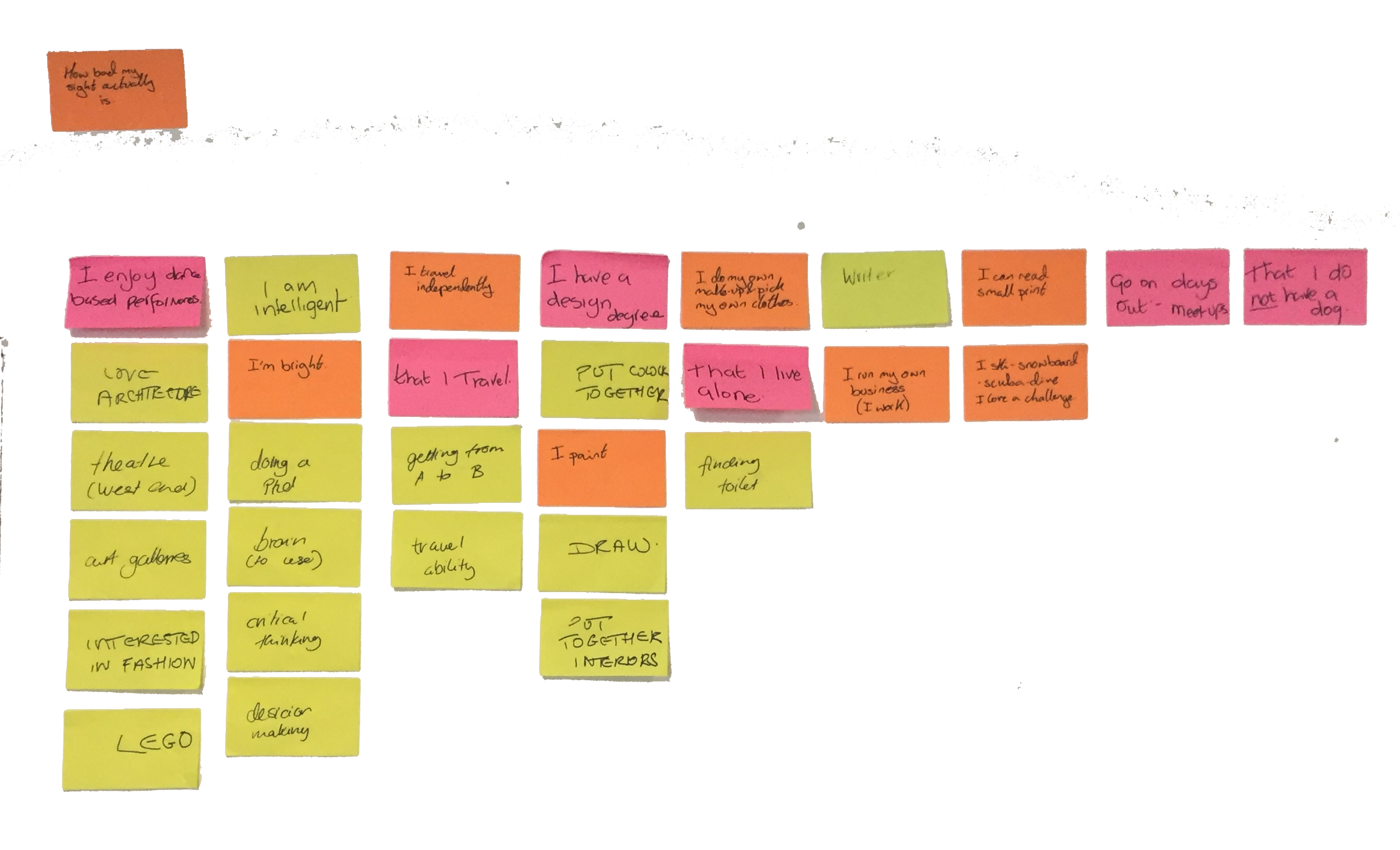 Only 3% of people registered blind are actually fully blind and consequently the other 97% have remaining useful sight. Having an invisible disability can affect a person’s’ everyday life and often also has a broader social, emotional and psychological impact on the individual. The aim of this project is to break the stigma and reshape the representation of someone who sees differently; to reshape how we see. This 18 month long design research project was conducted in collaboration with the Royal National Institute of Blind People and the Helen Hamlyn Centre of Design, Royal College of Art after the RNIB’s success with a viral video called #How I See (find below).