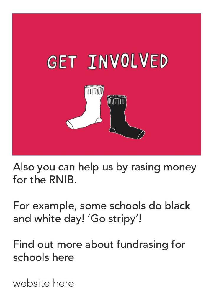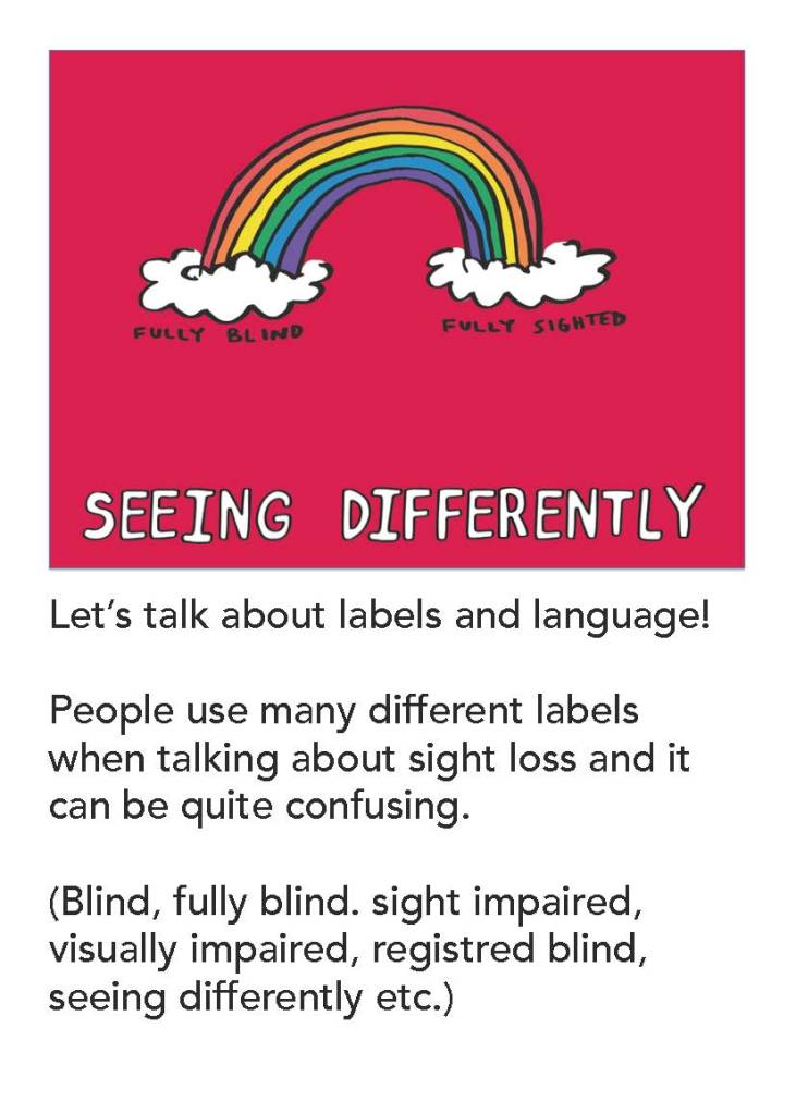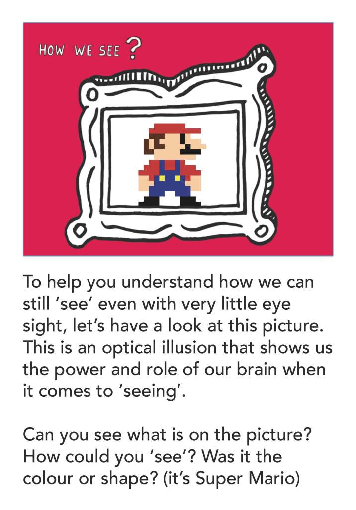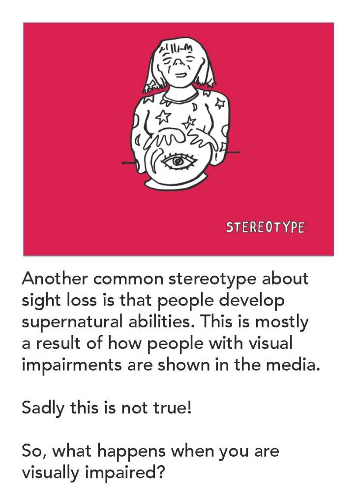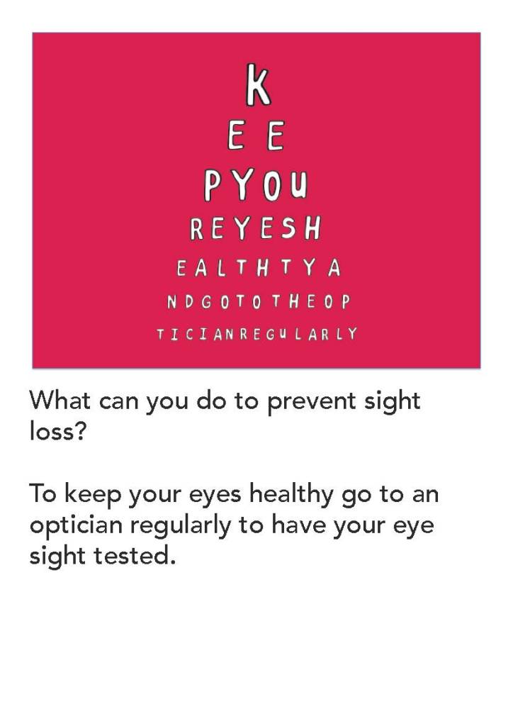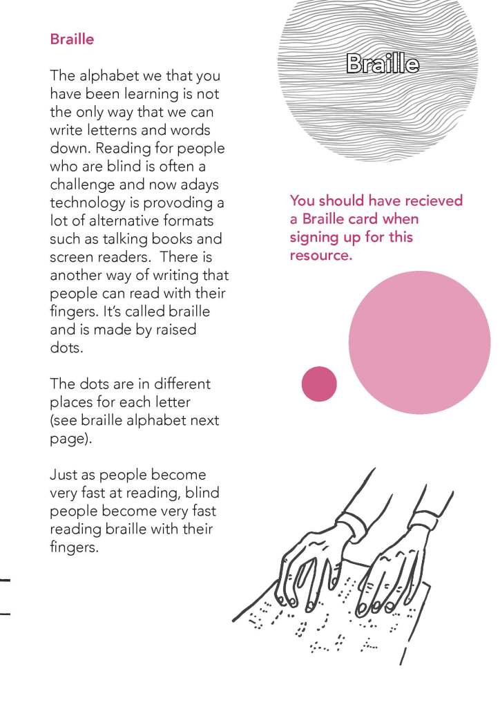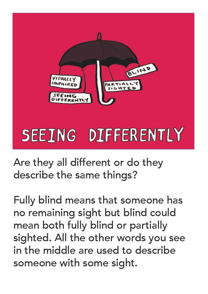 Providing materials for a visually impaired volunteer to visit a school and facilitate a session on sight loss addressing the fact that there are many ‘blind’ people that have remaining sight, confusing language around the topic of sight loss as well as stereotypes and myths around blindness.