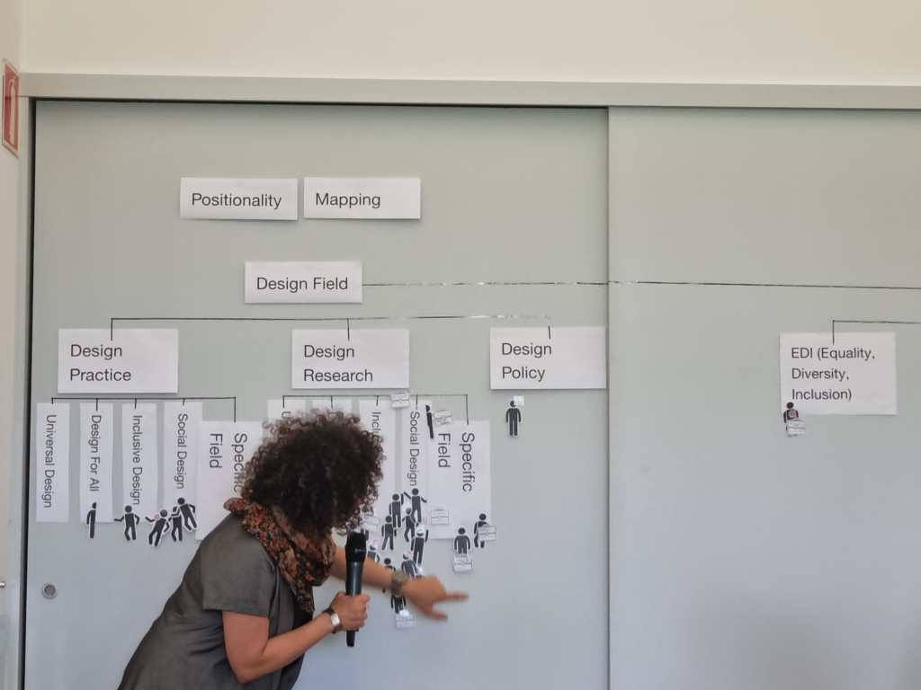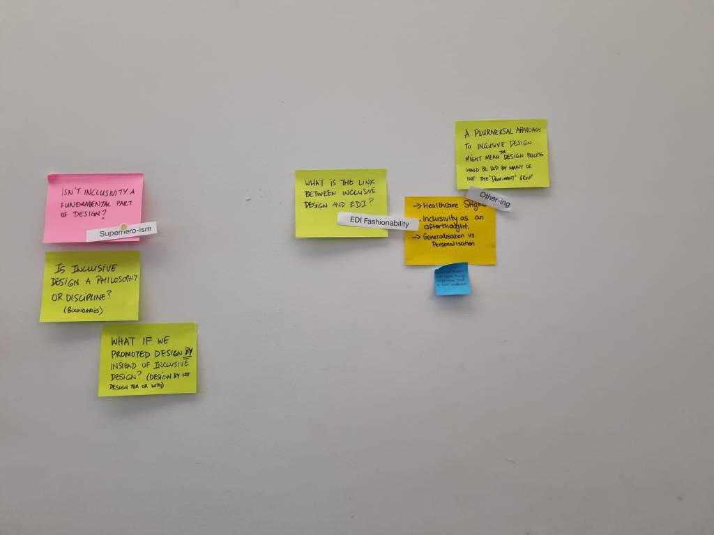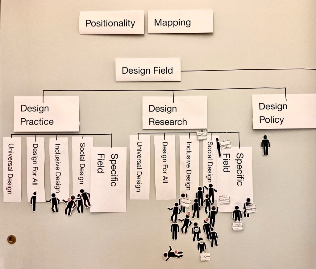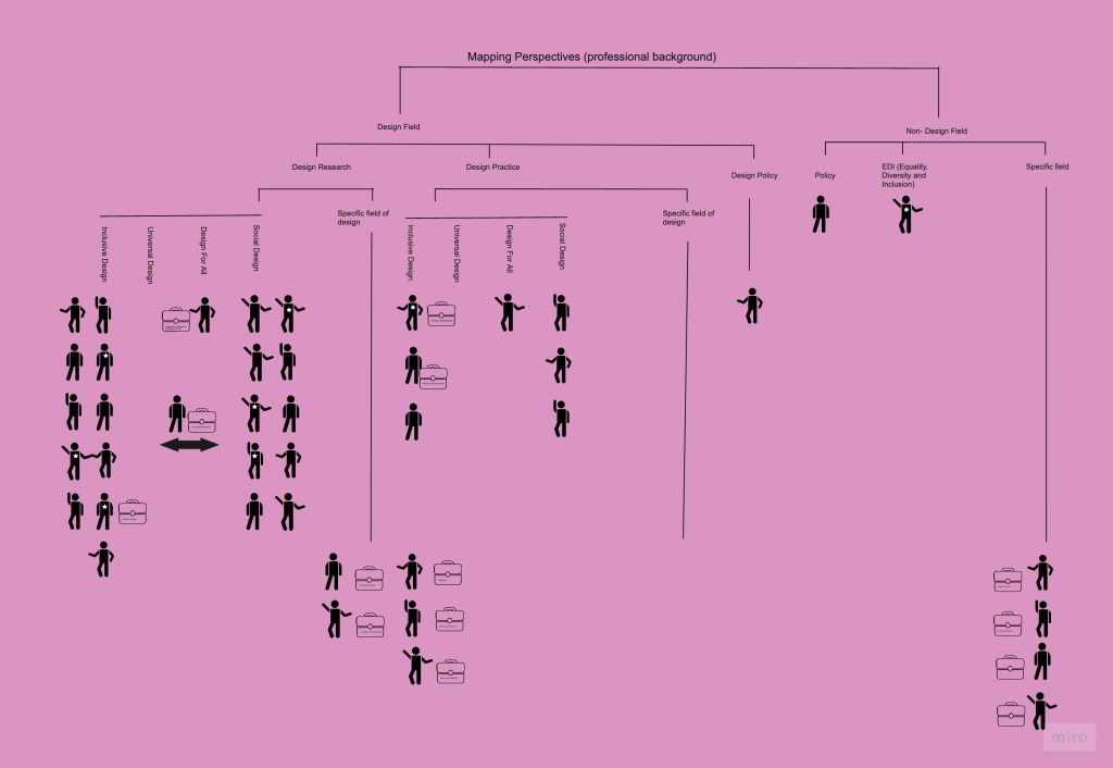 Below we have outlined the positionality in form of mapping professional backgrounds and lived-experience individuals (marked by a little star) as well as transcripts of online and in-person notes mapping dilemmas within Inclusive Design