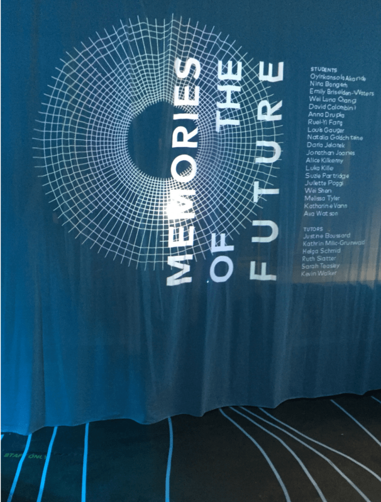 ‘The past is an exotic place – that makes it good for considering possible futures. Re-forming the historical in a new way using techniques and technologies of the present, the artists explored elements of the 1862 London Exhibition and the 2015 Milan Expo to build a bridge from the past to the future. Everything you see here was a reflection and refraction of past, present and future. Memories of the Future was an exhibition curated and designed by Royal College of Art students looking at the mechanics of the past world expositions, subverting historic designs and rediscovering the role of mechanics within the exhibition. It was the result of a collaboration between Information Experience Design and History of Design at the Royal College of Art.